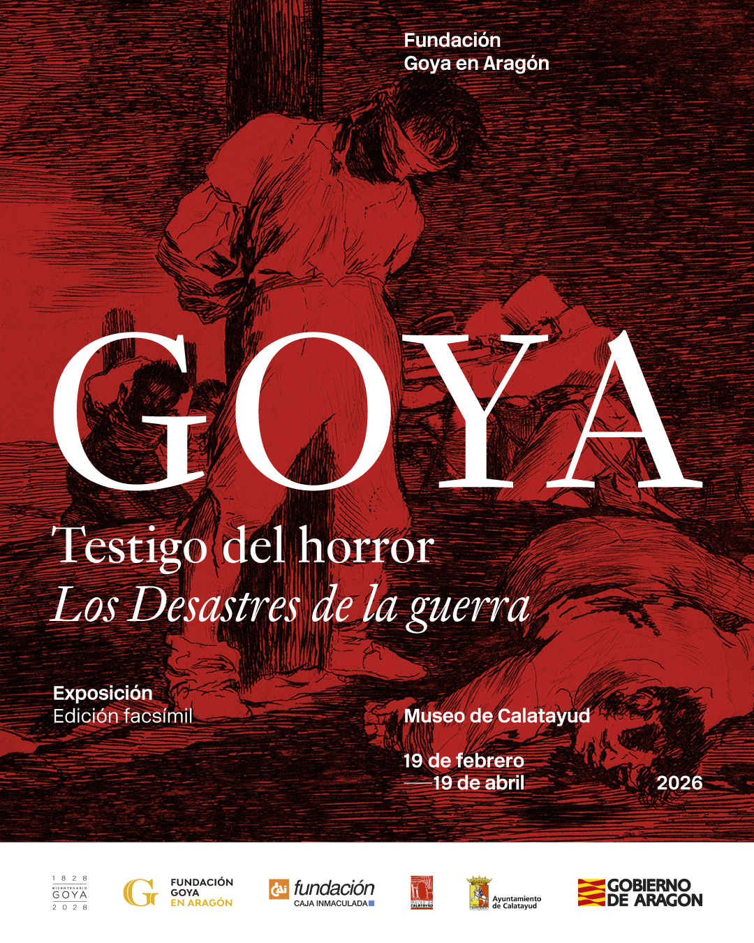 Gobierno de Aragón, Fundación Goya en Aragón y Fundación Caja Inmaculada presentan este jueves en el Museo de Calatayud la exposición ‘Goya, testigo del horror: Los Desastres de la Guerra’, que exhibe en el museo bilbilitano la serie de 80 estampas en edición facsímil, propiedad de Fundación CAI. Las obras, idénticas a las que conforman la serie inicial realizada entre 1810-1820, se mostrarán al público hasta el 19 de abril.