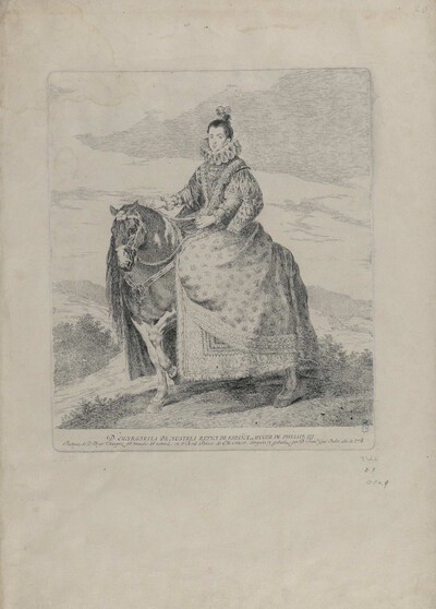 Goya was so dissatisfied with the end result of this work that he decided not to publish it. We do however still have the two state proofs. The first of them comes from the first etching, prior to the second etching and the aquatint. The second proof has been retouched by hand in greenish-grey toned ink on the face, fingers, inside of the cape, underneath the hands and the left knee of the figure of the buffoon, as well as in smudged black pencil. This state proof has been made on the reverse of the second state proof of Barbarossa.